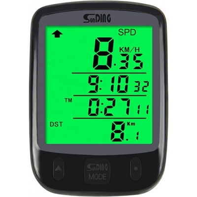 Cyklocomputer s 9-ti funkcemi. Funkce: aktuální rychlost ujeté kilometry nastavitelné celkové kilometry ujetý čas hodiny maximální rychlost průměrná rychlost porovnání aktuální...