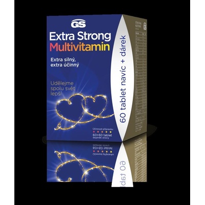 Kvalitní GS Extra Strong Multivitamin tbl.60+60 dárek 2022 za 454.5 Kč. GS Extra Strong Multivitamín je doplněk stravy s komplexním a vyváženým složením vitaminů, minerálů a...