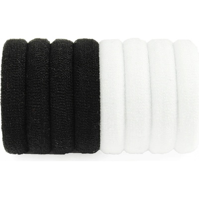 Pevné menší gumičky v černé a bílé barvě. Balení obsahuje: 8 ks Rozměr: šířka 0,7 cm, vnější průměr 3 cm