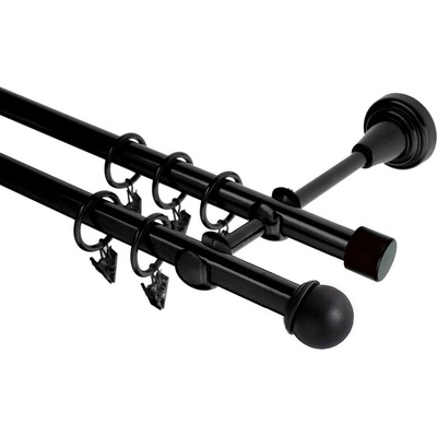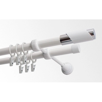 Kovová garnýže ve dvoutyčovém provedení na záclonu a závěs.. Garnýže jsou dodávány jako celé komplety. Komplet obsahuje: Tyč zvolené délky, konzole na zeď, kroužky s žabkami,...