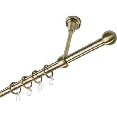 OK-GarnýžeCZ Garnýž kovová jednořadá 25mm Fulda mosaz 170 cm do stěny / kroužky s háčkem