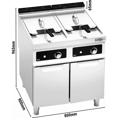 Plynová fritéza - 2x18 L - RM Gastro | 800/700, F2/18-78G model: F2/18-78G rozměry: 800 x 700 x 900 mm příkon plyn: 27 kW počet van: 2ks objem vany: 18 l rozměr koše:...