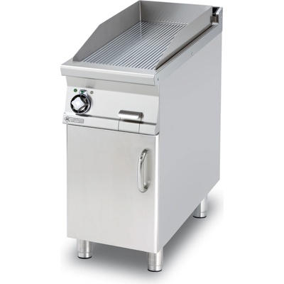 Elektrická grilovací deska rýhovaná vyrobená z nerezové oceli se zásuvkou na tuk. Rozměr desky: 36x68 cm. Dveře nejsou součásti – možno dokoupit. Vhodná do kuchyně nad 500...