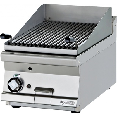 Gril lávový plynový vyrobený z nerezové oceli. Rozměr roštu v cm: 38x52. Vhodný do kuchyně do 300 jídel – hotely, školy a restaurace. Masivní konstrukce z plechu o síle 1,5 mm....