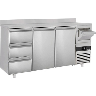 Provedení - Barový chladicí stůl - Ideální řešení pro profesionální použití - Ekologicky šetrná polyuretanová izolace bez obsahu freonů - Užitný objem: 570 l - Odklepávač...