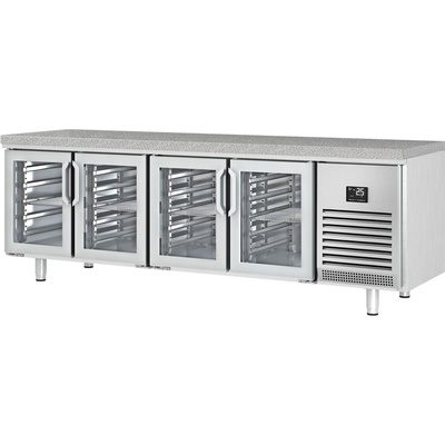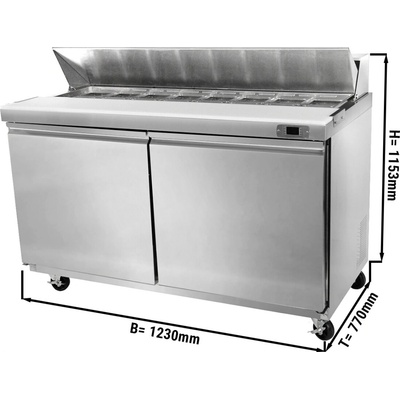 Mrazicí stůl čtyřdvéřový SM 3D DH bez zadního lemu, jeho teplotní rozsah je od -18 °C do -24 °C, 4 samozavírací křídlové plné dveře, digitální ovládání. Rozměry police 1/1 GN,...