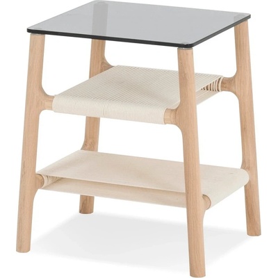 Konferenční stolek Fawn disponuje odkládací policí v podobě elegantního výpletu. Ten je tvořený pevným bavlněným lanem, které se skvěle doplňuje s konstrukcí z masivního naolejovaného dubového dřeva. Třešničkou na dortu je pak obdélníková deska z tvrzeného skla....