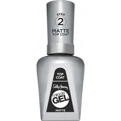 Sally Hansen Miracle Gel Top Coat Matte matný vrchní lak 14.7 ml Top Coat Miracle Gel Matte a lak Miracle Gel jsou nejlepší sada na gelové nehty – bez vytvrzování UV lampou!...