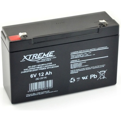 Gelová baterie 6V 12Ah XTREME 151x94x50 4,8 82-201 Gelová baterie vyrobená technologií AGM (Absorbent Glass Mat). Vysoce kvalitní olověné desky a elektrolyt zajišťují spolehlivé napájení většiny napěťových záložních systémů, jako jsou UPS nebo systémy nouzového...