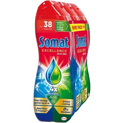 Somat Excellence Duo gel do myčky na mytí nádobí, 684 ml, 38 dávek Somat Excellence Duo gel do myčky na mytí nádobí je navržen tak, aby usnadnil každodenní mytí nádobí a přinesl zářivý lesk i při nižších teplotách. Díky speciální technologii je efektivní na eco a...