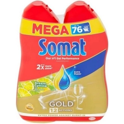 Somat gel do myčky 2x38 dávek Excellence 2x684 ml Duo Gel je multifunkční vysoce účinný tekutý prostředek na mytí nádobí, který kombinuje dvě navzájem se doplňující složení Obsah: 2 x 684 ml