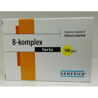 GENERICA B-komplex forte 100 tablet Polyvitaminový přípravek obsahuje všech 8 esenciálních vitamínů skupiny B včetně kyseliny listové a vitamínu B12.