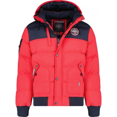 Pánská zimní bunda GEOGRAPHICAL NORWAY BUGS MEN v červené barvě. Vyrobena ze 100% polyesteru, s odnímatelnou kapucí a praktickými kapsami. Stylová pánská zimní bunda...