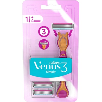 Gillette Pohotová holítka Simply Venus3 4 ks. Pohotová holítka Simply Venus3 s výkyvnou hlavicí a 3 břity zajišťují hladké oholení i v nedostupných místech. Pro dokonale hebkou...