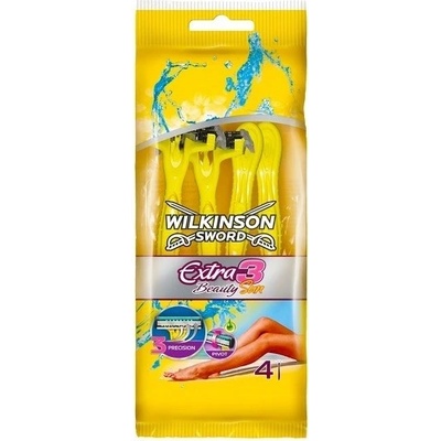 Wilkinson Sword Extra 3 Beauty Sun jednorázové tříbřité žiletky pro ženy 4 ks Tříbřitý jednorázový holící strojek s výkyvnou hlavicí a s lubrikačním páskem s přídavkem Aloe...