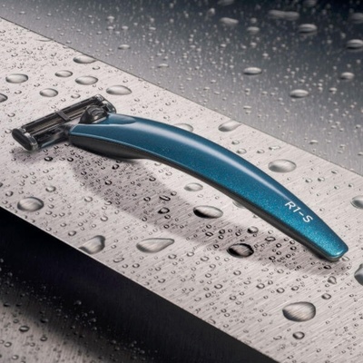 Moderní designový holicí strojek R1-S od značky Bolin Web. na hlavice Gillette Mach3. Rukojeť je v energické modré metalíze. Spodní část rukojeti je protiskluzová, vyrobená z...