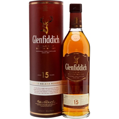 Glenfiddich 15let Solera 0,7 l. Glenfiddich Solera Reserve 15 let je čistá jednosladová whisky, která dozrává k dokonalosti ve třech typech sudů, a to v sudech po sherry, tradičních dubových a nových dubových sudech.