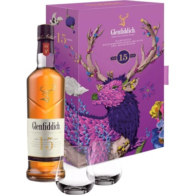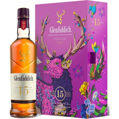Palírnu Glenfiddich založil v roce 1887 William Grant. Pojmenoval ji podle údolí Glen Fiddich, ve kterém leží, což v gaelštině znamená údolí jelenů. Odtud i jelení hlava v logu značky. 15 let ve třech druzích sudů metodou Solera: v evropském dubu po sherry, v sudech po...