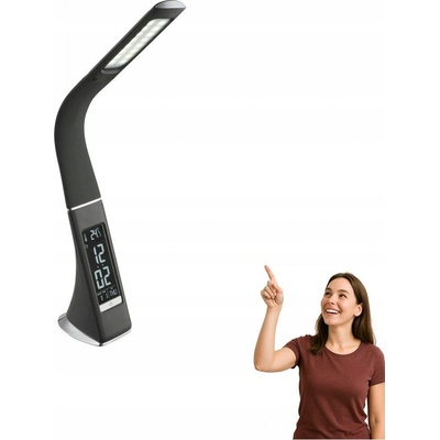 Stolní LED lampa s displejem. Moderní ohebná stolní lampička s přehledným displejem. Funkce na displeji: Teplota v místnosti, hodiny, kalendář. Funkce lampičky: Stmívatelná, možnost změny barvy světla 3000K-4500K-5800K.