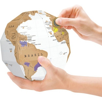 Stírací mapa 3D globus puzzle Elegantní mapa pokrytá zlatou fólií. Nadstandardní velký rozměr, který jistě zkrášlí každý interiér nebo kancelář. 3D kreativní mapa světa Mapa...