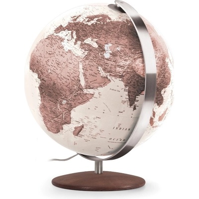 Moderní svítící glóbus zobrazující fyzicko-politické rozdělení světa. - podstavec vyroben ze dřeva, poledník vyroben z nerezové oceli - koule vyrobena z tvrzeného...
