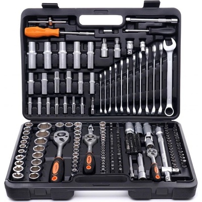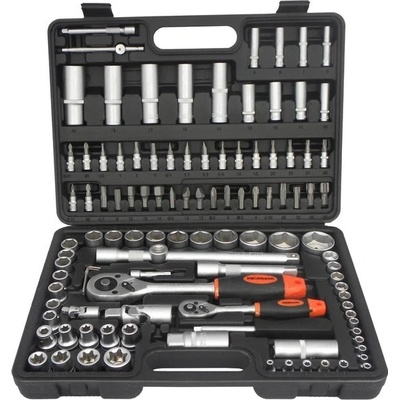 Praktická velká kvalitní gola sada vyrobená z oceli chrom vanadum obsahuje 108 ks nářadí. Všechny prvky a nástavce jsou uložené v plastovém kufříku.Sada obsahuje:* Nástrčné...