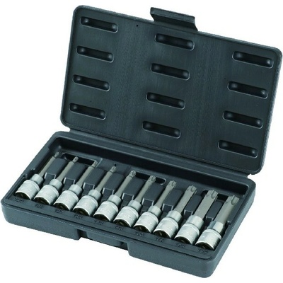 10 Dílná sada zástrčných hlavic TORX 1/2" prodloužené GOLA 120010L Sada 1/2" prodloužených hlavic TORX Obsah sady: Prodloužené hlavice 1/2": TORX 20, 25, 27, 30, 40, 45, 50, 55,...