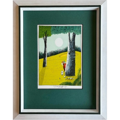 Autor: Bím TomášNázev díla: Golf Rozměr s rámem: 30.9x39.0 Rozměr obrázku: 14.5x20.7 Technika: Grafika - Litografie Original: ano Signováno: ano Sklo: Muzeální sklo - ARTGLASS...