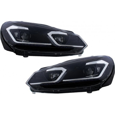 Přední světlomety VW Golf 7 VII, 2012-, LED Bar, černé s linkou chrom Přední světla s čočkou a homologovaným denním LED svícením. Cena za 2ks - pár Schváleno do provozu,...