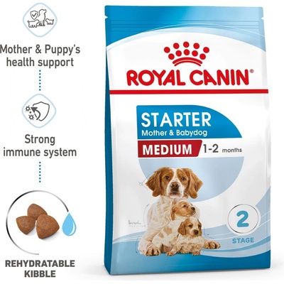 Royal Canin Starter Mother&Babydog Mini je kompletní super prémiové krmivo pro štěňata (do 2 měsíců věku) a březí/kojící feny malých plemen (do 10 kg váhy v dospělosti).