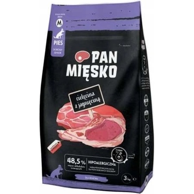 Pan Mięsko Senior Suché Krmivo Pro Psa Telecí S Jehněčím 3kg Křupky M 48,5% živočišné složky 51,5% rostlinné složky a zdravé přísady → Vyrobeno v Polsku! HYPOALERGENNÍ...