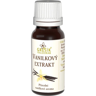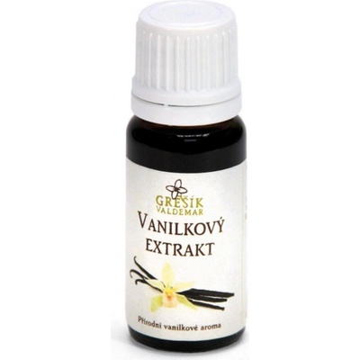 Vanilkový extrakt 10ml - Grešík Přírodní vanilkové aromaUrčeno pro ochucení potravin, zejména krémů, pudinků, nápojů a sladkého pečiva. Neobsahuje cukr. Dávkování: cca 30 kapek na 1 dcl např. mléka, krému, těstaSložení: 10% výtažek z plodu vanilky ve 35% lihu Obsah: 10...