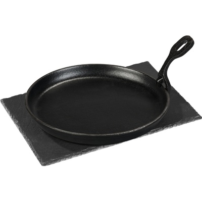 Grillmeister Litinová servírovací pánev s břidlicovou deskou / Lis na hamburgery Vlastnosti Snadno se čistí Výrobek nepoužívejte; pokud je poškozený Litinová servírovací pánev s...