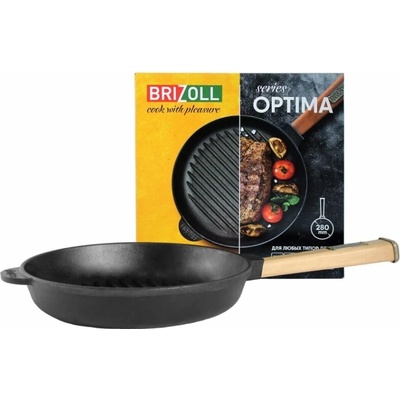 Litinová grilovací pánev 280mm H-5cm Brizoll series Optima Odolný - životnost není omezena. Obohacuje potraviny železem. Nepálí. Snadná péče. Žádné chemické nečistoty (žádný...