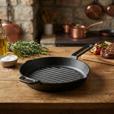 ⭐ Litinová grilovací pánev 26 cm ⭐ Vyrobeno z jediného odlitku litiny. ✅ VÝHODY: ✅ Trvanlivost:Litinové pánve jsou mimořádně trvanlivé a odolné proti poškození. Mohou sloužit...
