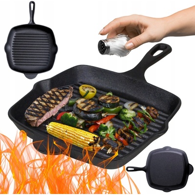 Odolná litinová čtvercová grilovací pánev 23 cm vhodná pro použití v jakémkoli typu trouby (kromě mikrovlnné) a na jakékoli varné desce - včetně indukční - a je nezbytnou...