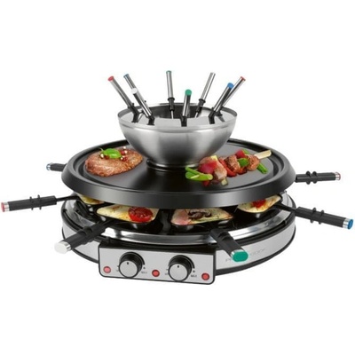 Praktická kombinace 2v1 raclette/fondue. Raclette gril má grilovací povrch s nepřilnavým povrchem o průměru 40,0 cm a uprostřed otvor pro nádobu na fondue nebo dodávaný...