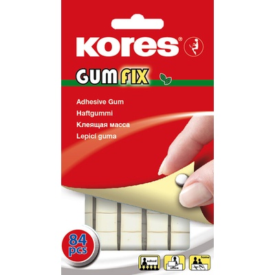 Oboustranně lepicí bílá guma Kores Gumfix - předsekané polštářky. Lepí plakáty, vzkazy, dekorace na večírky, kalendáře, mapy atd. Znovu použitelná guma, snadná aplikace, nezanechává stopy, netoxická.