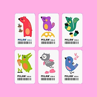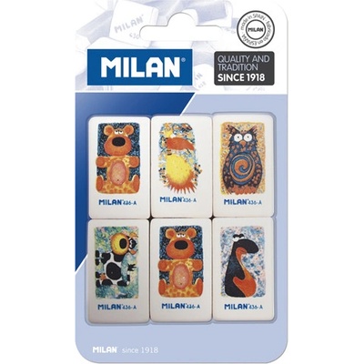 Guma MILAN 424 Animals*měkká*syntetnická*barevný potisk*vhodná k odstranění grafitových stop u všech povrchů Klasická měkká syntetnická guma s barevným potiskem o rozměru 3,9...