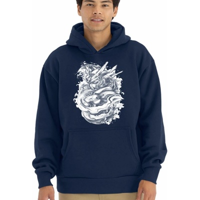 Mech Gundam v2, bílý tisk mikina OVERSIZE unisex NOVINKA