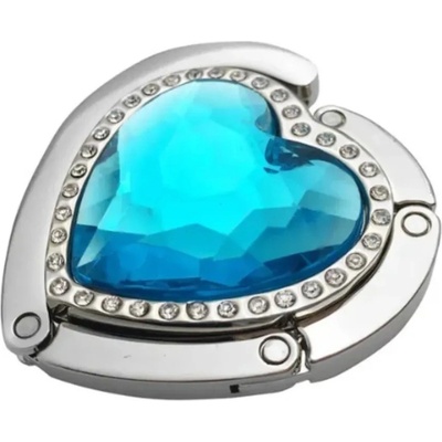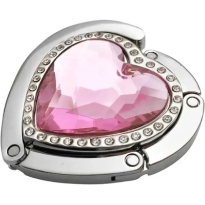 Háček na kabelku ve tvaru srdce s krystalem a zirkony po obvodu. Praktický dárek - pohotový pomocník.