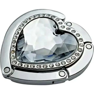 Háček na kabelku ve tvaru srdce s krystalem a zirkony po obvodu. Praktický dárek - pohotový pomocník.