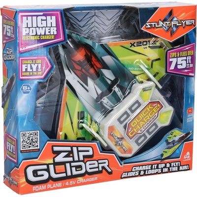 Elektrické házecí letadlo Zip Glider s rozpětím křídel 23 cm. Dolet až 22,9 m. Letadlo je vyrobeno z pěny a je rychlonabíjecí. Návod na nabíjení je uveden na zadní straně obalu...