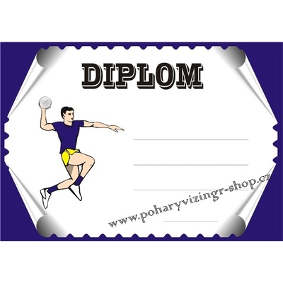 Házená č.16. Diplom formátu A4 (250 g). Objednáváte NEVYPLNĚNÉ DIPLOMY (BEZ TEXTU) a chcete si je vyplňovat vlastní tiskárnou - napište do textu "BEZ LINEK". Objednáváte diplomy...