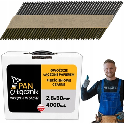 Hřebíky do hřebíkovačky spojené papírem 2,8x50 34° Kroužkové 4000ks✨ Hřebíky spojené papírem 2,8x50 mm kroužkové černé – 4000 ks ✅ Univerzální hřebíky pro speciální...