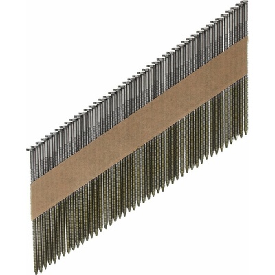 Úhel 34° Hlava D 7,4 mm Dřík: Hladký, ocel Průměr hřebíku 2,8 mm Délka hřebíku 63 mm Spojené papírem Balení 2200 ks Vhodné pro M18 FFN Hřebíky upevněné pod úhlem na papírové pásce