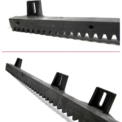 Nylonový ozubený hřeben s podpěrnými úchytkami (stavitelnými nahoru nebo dolů). Určený pro brány o hmotnosti až 500 kg. Délka hřebene je 0,5m