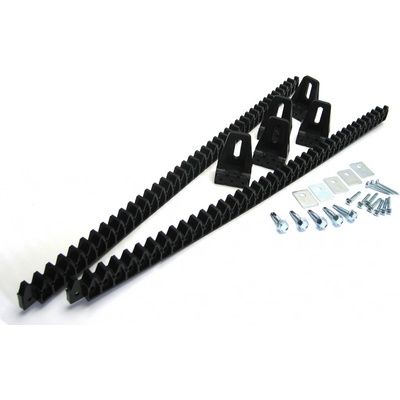 Ozubený nylonový hřeben 25 × šířka 12 mm se spodním úchytem. Délka 2 × 500 mm s pěti konzolami (stavitelné nahoru/dolů) včetně samořezných šroubů se čtvercovými podložkami do...