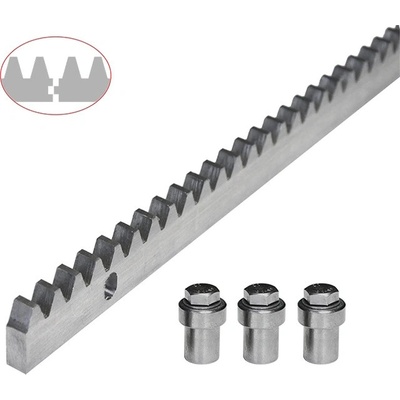 Zinkovaný ozubený ocelový hřeben 30 x š.12mm. Délka 1000mm se třemi frézovanými otvory včetně varných válcových rozpěrek, podložek a šroubů M8. Je určen pro brány o hmotnosti do...