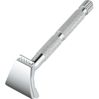Holicí strojek MERKUR Solingen ve speciálním provedení pro úpravu vousů a kníru. Strojek vloženou žiletku pevně sevře a mírně zkroutí, čímž dojde ke zpevnění žiletky a žiletka...